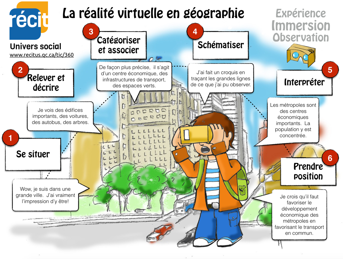 Comment les outils de réalité virtuelle peuvent nous permettre de faire l’expérience de la ville, d’un territoire protégé et même de nous permettre de visiter un musée? Dans ce dossier, nous vous proposons une démarche pédagogique et des tâches pouvant servir à observer, expérimenter, analyser et éventuellement à transformer le territoire. La réalité virtuelle peut-elle briser les murs de la classe?