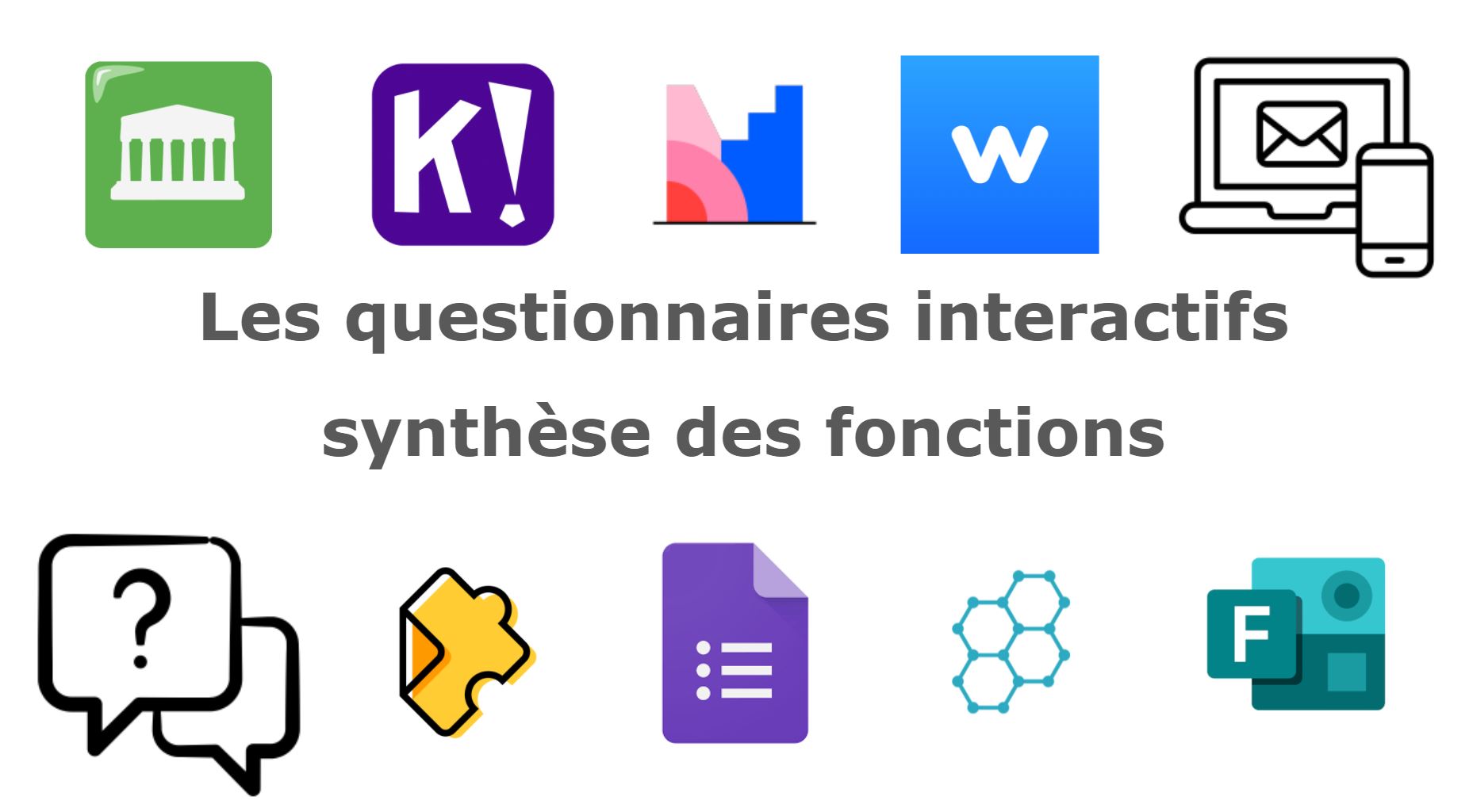 Nous vous proposons un diaporama présentant une synthèse des fonctions des outils mentionnés plus haut. Notez que ces particularités s’appliquent à la version gratuite des questionnaires. Cliquez sur l'image ci-dessous afin d'accéder au diaporama synthèse.